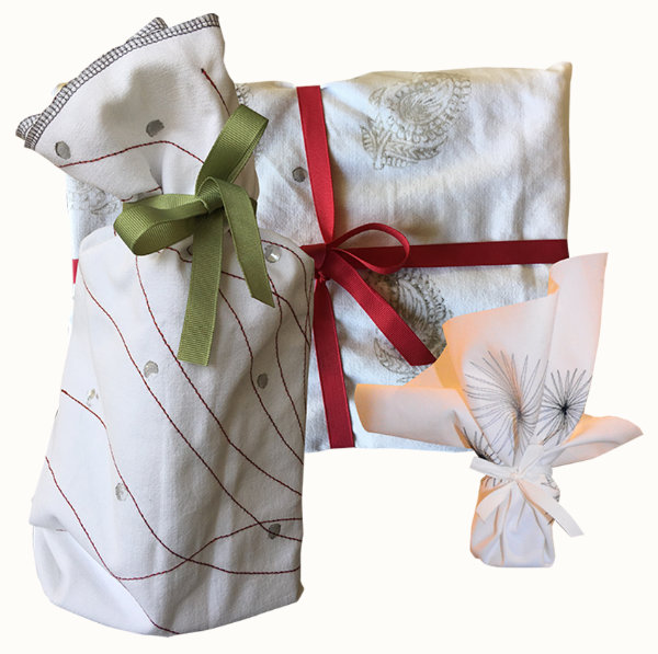 Die Besuchende können ein Geschenktuch aus ihren mitgebrachen Leinentücher/Vorhang oder Stück Stoff, ganz nach Ihrem Gusto nähen und somit eine umweltschonende Verpackung selbst herstellen.